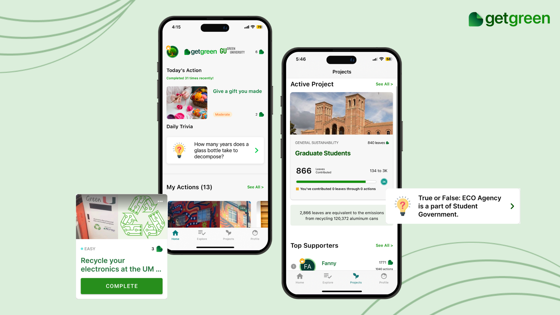 Companies, cities, and universities can choose to custom brand the app or add new actions specific to their organization by becoming a GetGreen partner.
